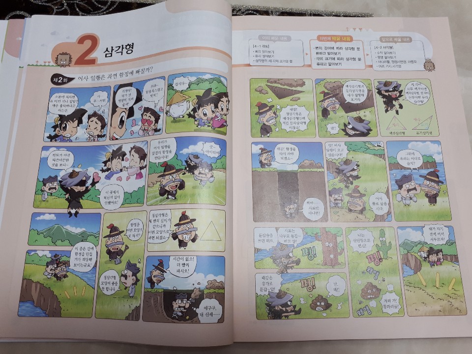 그리고 엄마표로 진행하고 있어서 좋았던 점은 개념학습만화 위에 보시면 이렇게 이미배운 내용과 이번에 배울 내용, 앞으로 배울 내용이 나와요.
