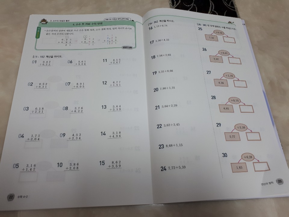 4학년2학기에서는 분수와 소수에 대한 연산이 필요한 단원이 있어요.