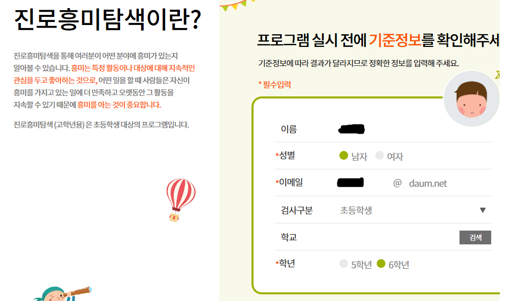초등학생은 아래 진로탐색 프로그램을 이용하면 되는데요.