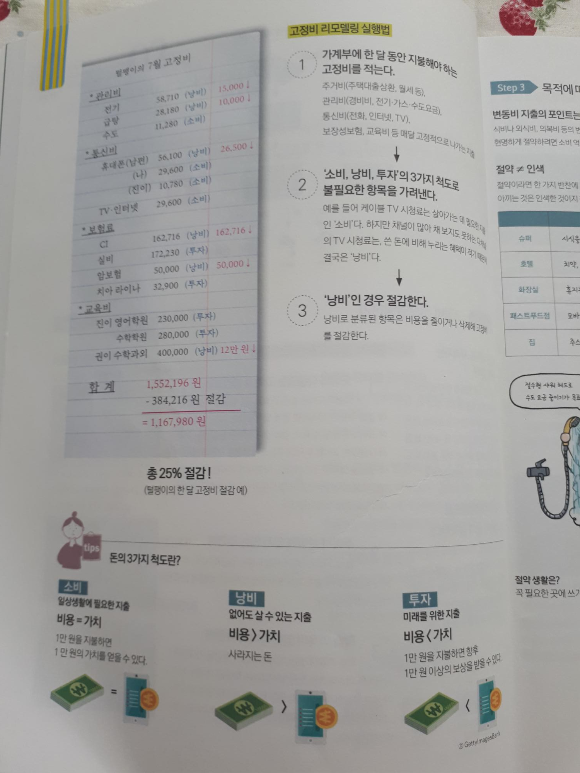 고정비항목을 파악해서 소비, 낭비, 투자로 분류해서 낭비항목을 지워나갑니다.
