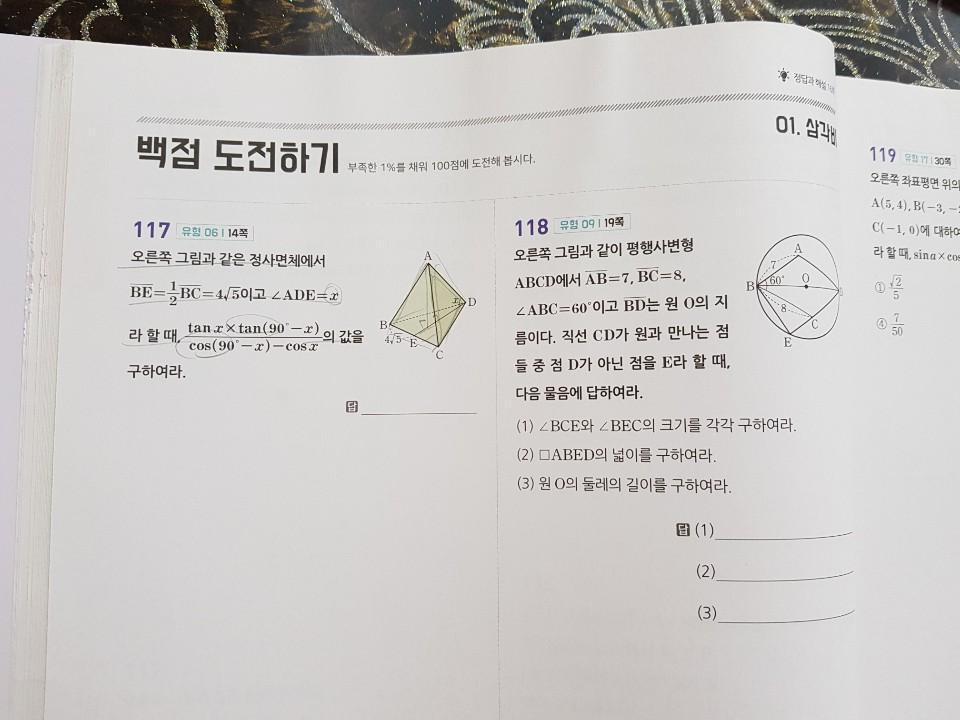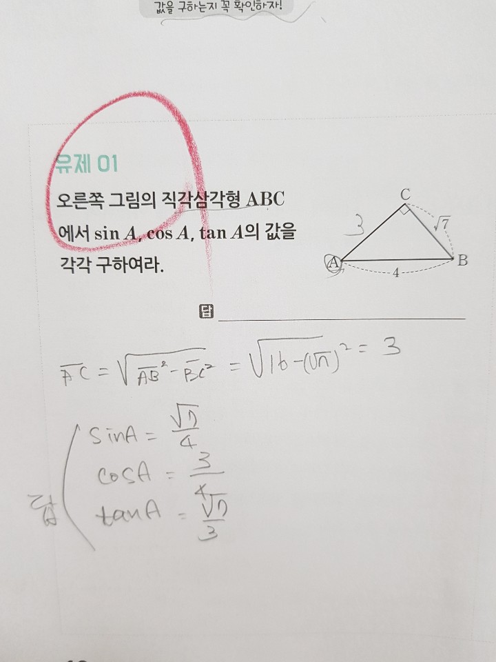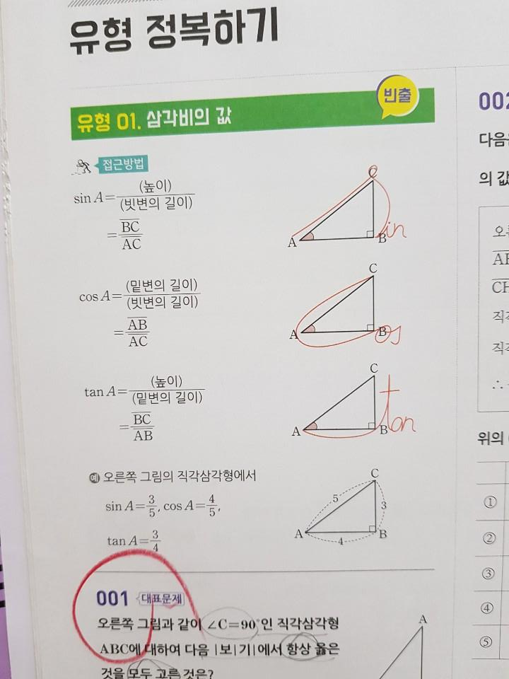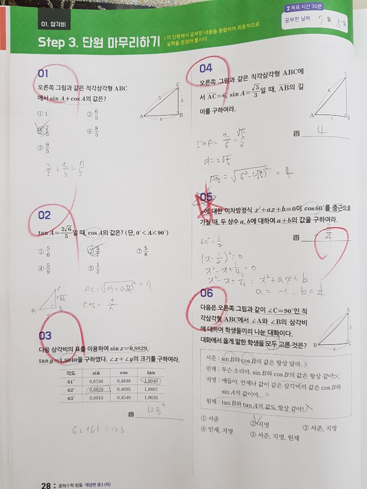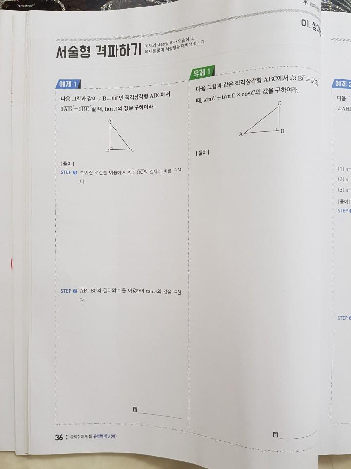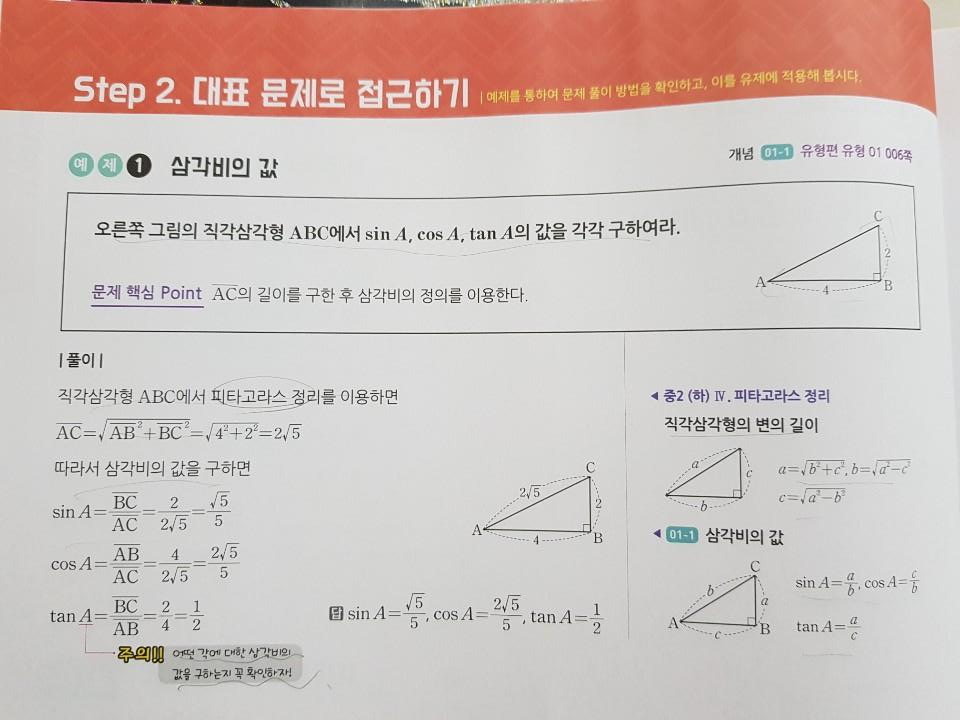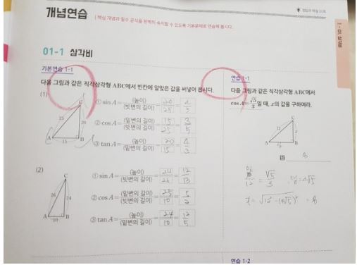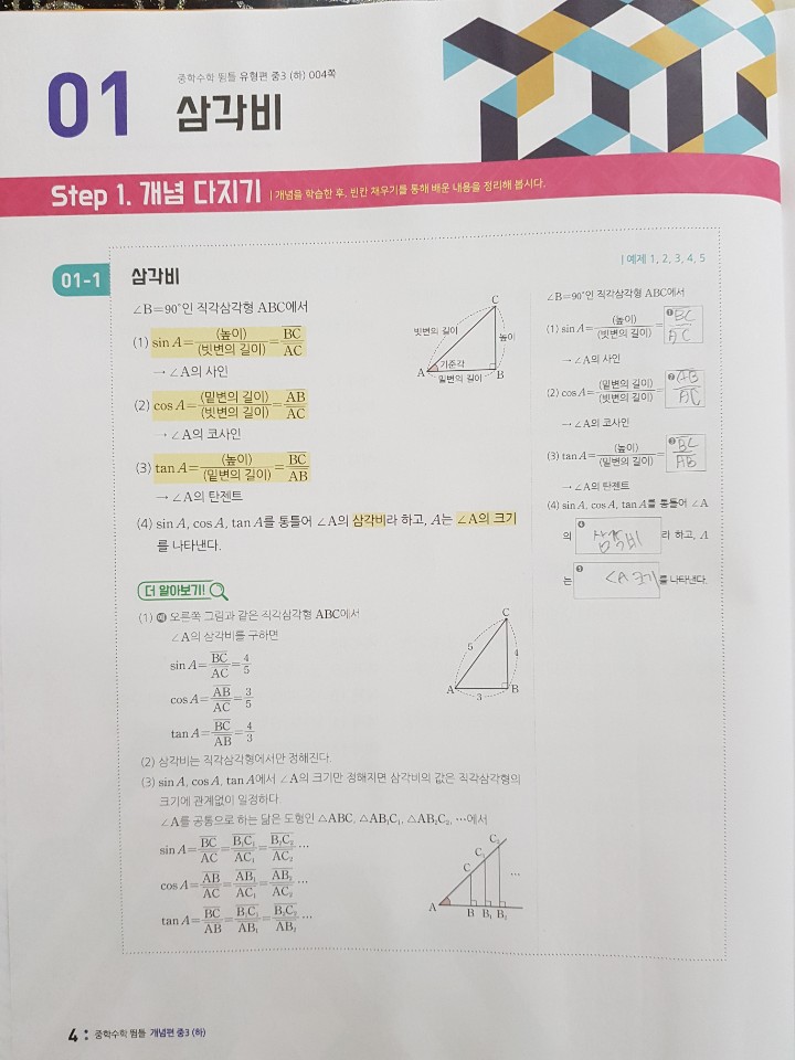 마침 중학수학 2-2 심화가 끝나고 3-1 수학을 들어갔지만 3-2가 2-2와 이어지는 기하부분이라 1단원 삼각비를 같이 해보기로했어요~